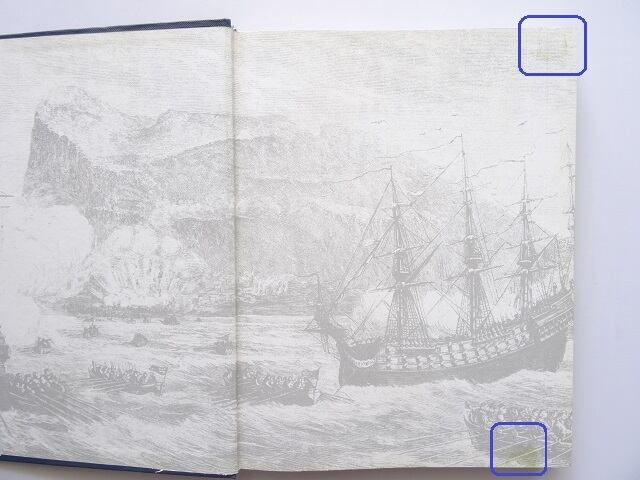 表紙裏のページにセロテープのシミ跡があります。